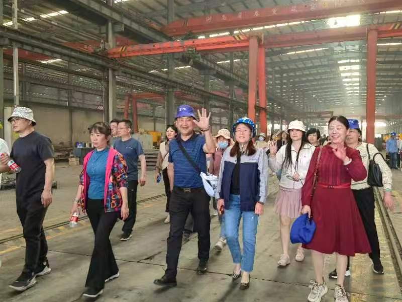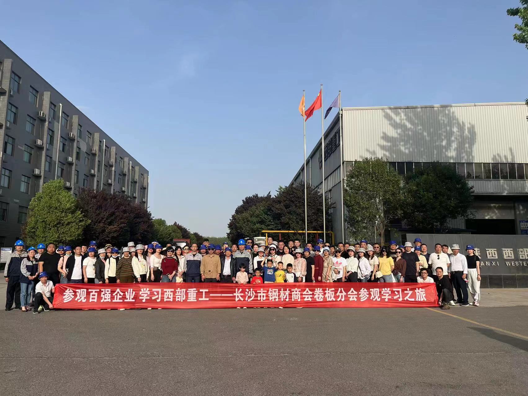 2023年4月15日下午,长沙市钢材商会卷板分会一行118人,在安博官网登录入口(中国)官方网站总经办总经理助理岳东风的带领下莅临陕西西部重工有限公司进行参观。我公司对其来访表示热烈的欢迎,由副总经理丁嘉奕、杨朋涛、财务部部长王红、综合部部长兼供管部部长谭义清、安环部副部长陈广利等进行了热情的接待。