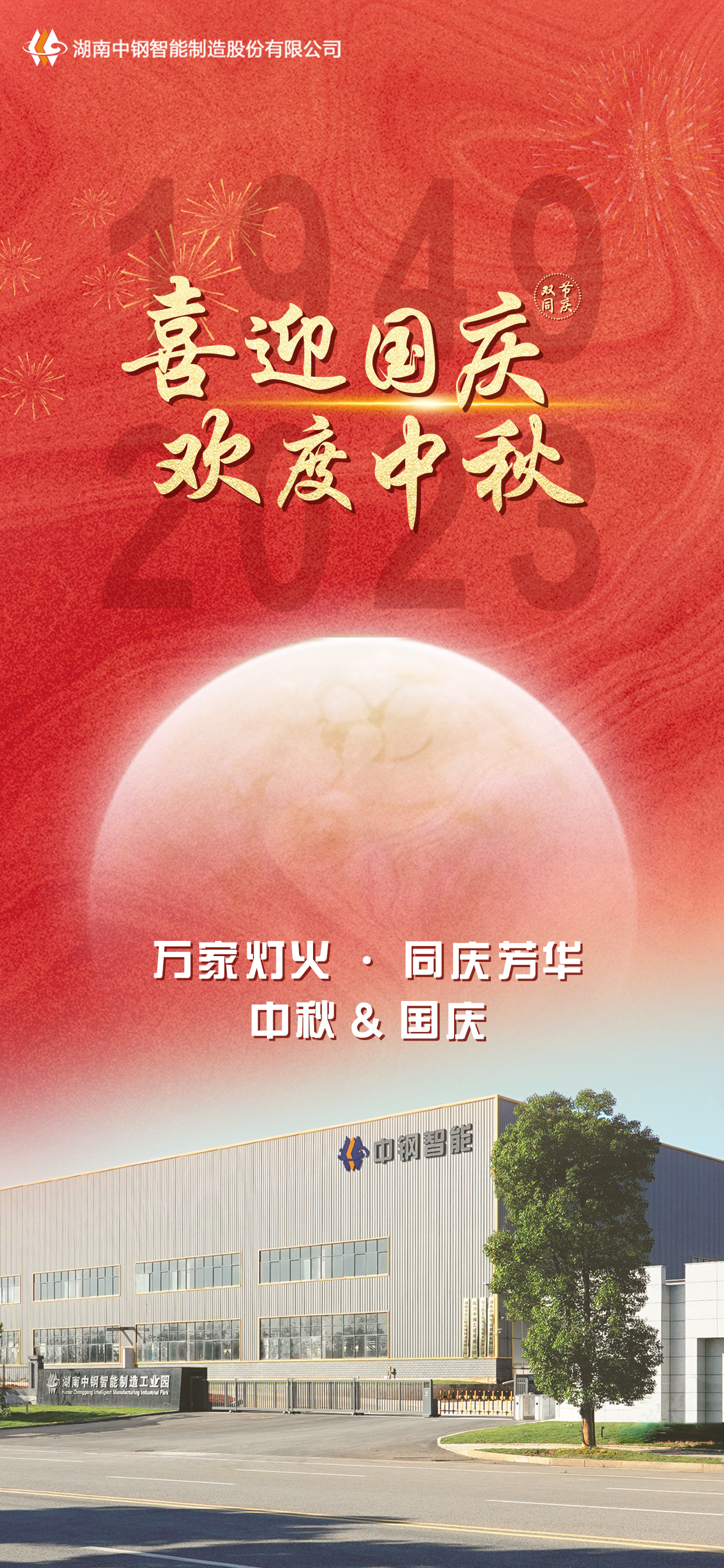 【概要描述】月满中秋,国泰民安。双节来临之际,湖南中钢祝大家节日快乐!也祝我们的国家越来越好!